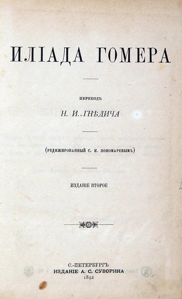 И тем не менее Пушкин оставался одним из самых горячих почитателей перевода Гнедича.