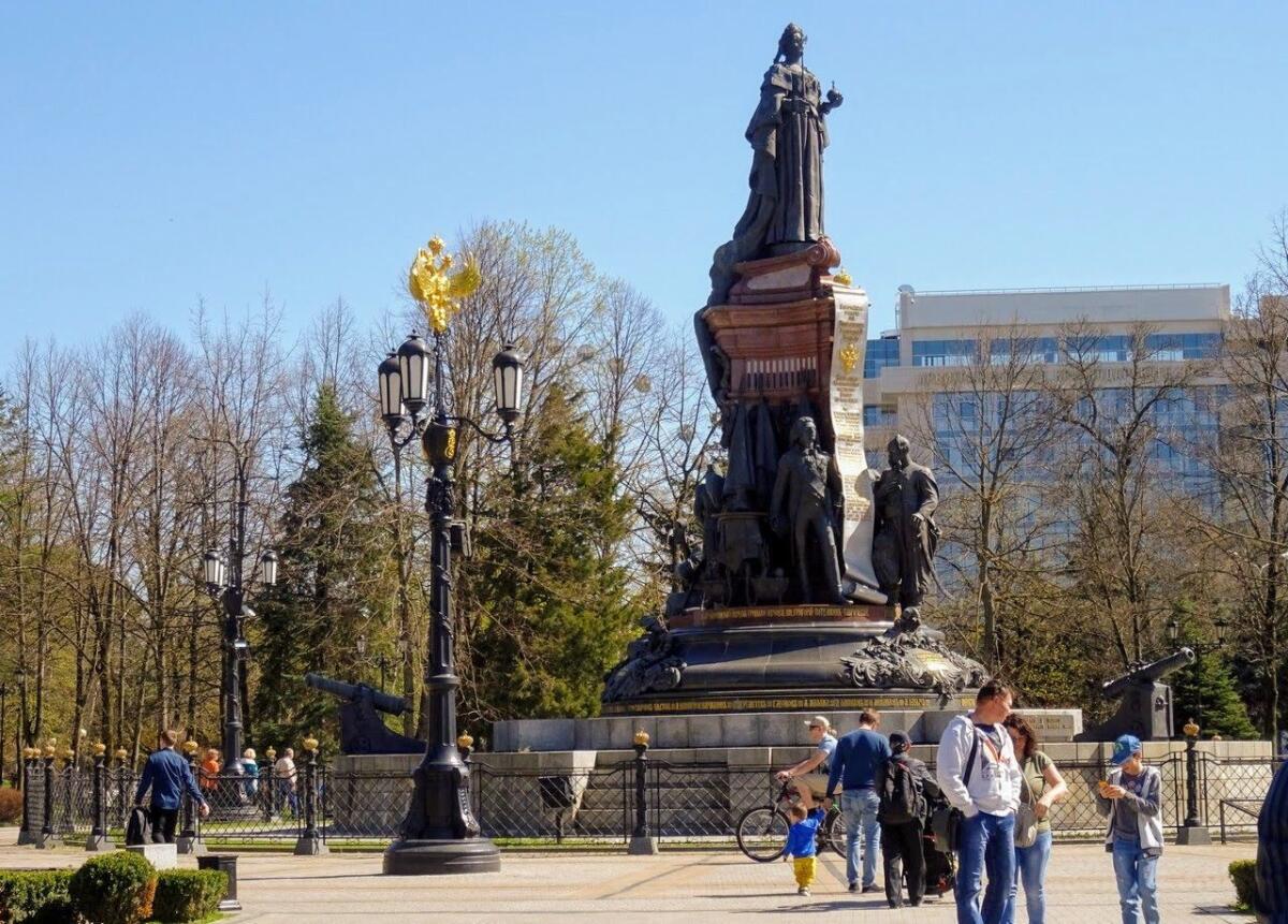 Характерно также, что не менее половины памятников императрице в России ставили по одному канону: на центральном постаменте — сама матушка-государыня, а у её ног (не скажем, что у основания) — различное количество лиц мужского пола, прославившихся и прославленных в её царствование.