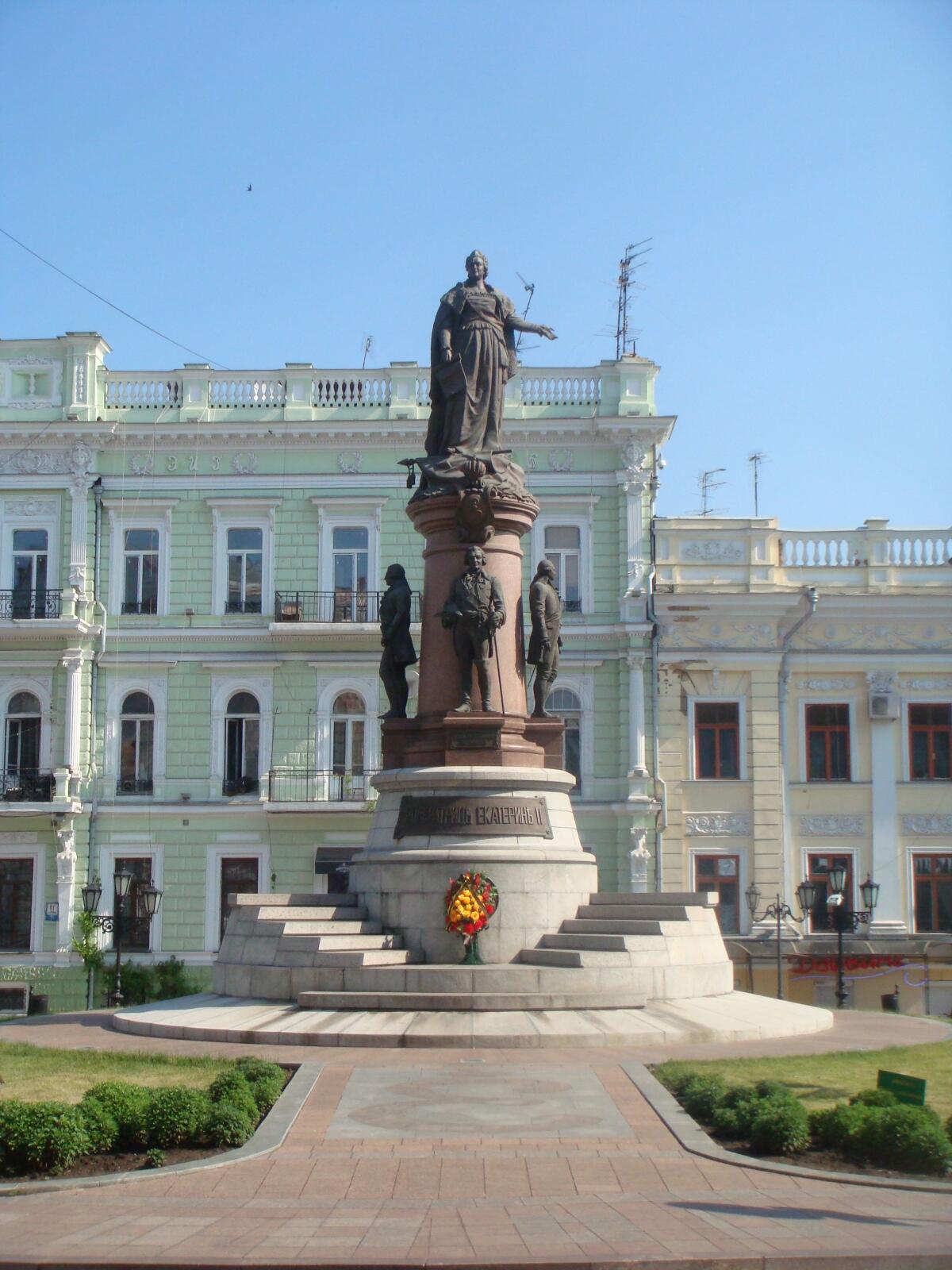 И что самое характерное, на всех памятниках такого рода — в Санкт-Петербурге, в Краснодаре, в Симферополе и в Одессе — среди различных мужских фигур одна неизменна. Григорий Александрович Потёмкин (1739 — 1791 гг.) — любимый и любящий.