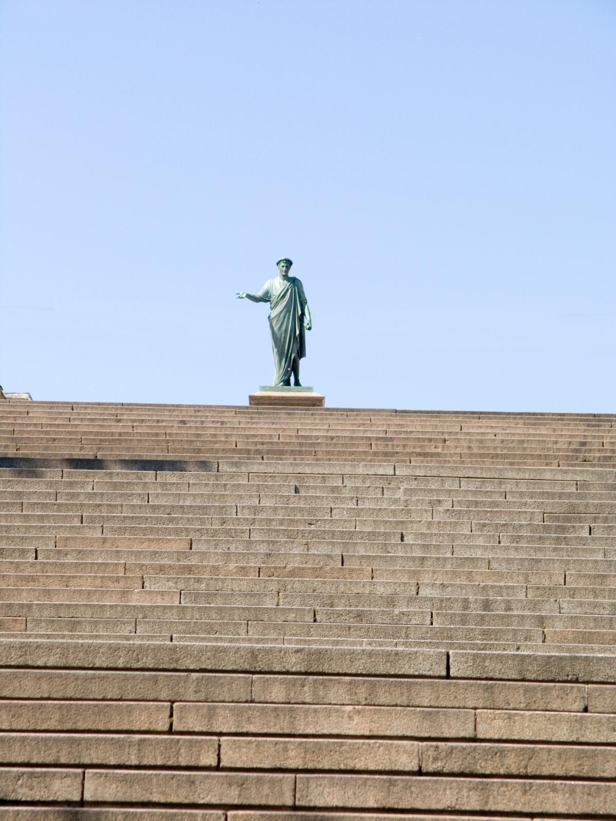 Но в 1925 году вышел на экраны фильм Сергея Эйзенштейна «Броненосец „Потёмкин“». Фильм мощный, фильм новаторский и, вероятно, фильм на все времена. Классической стала сцена из фильма, когда детская коляска, отпущенная матерью, убитой казаками, катится по ступенькам знаменитой и величественной лестницы и, в конце концов, переворачивается. Этот эпизод лучше всякого клея склеил в сознании зрителей роскошный подъём в город из порта и название кинофильма, «Броненосец „Потёмкин“».