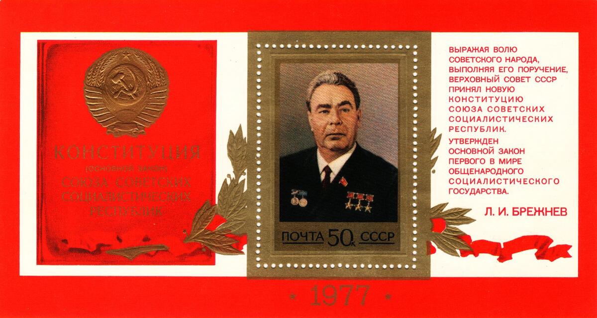 1977 год — принятие новой Конституции СССР, «конституции развитого социализма», как бы закрепляющей и утверждающей успехи страны, отмечающей кульминацию нового этапа.