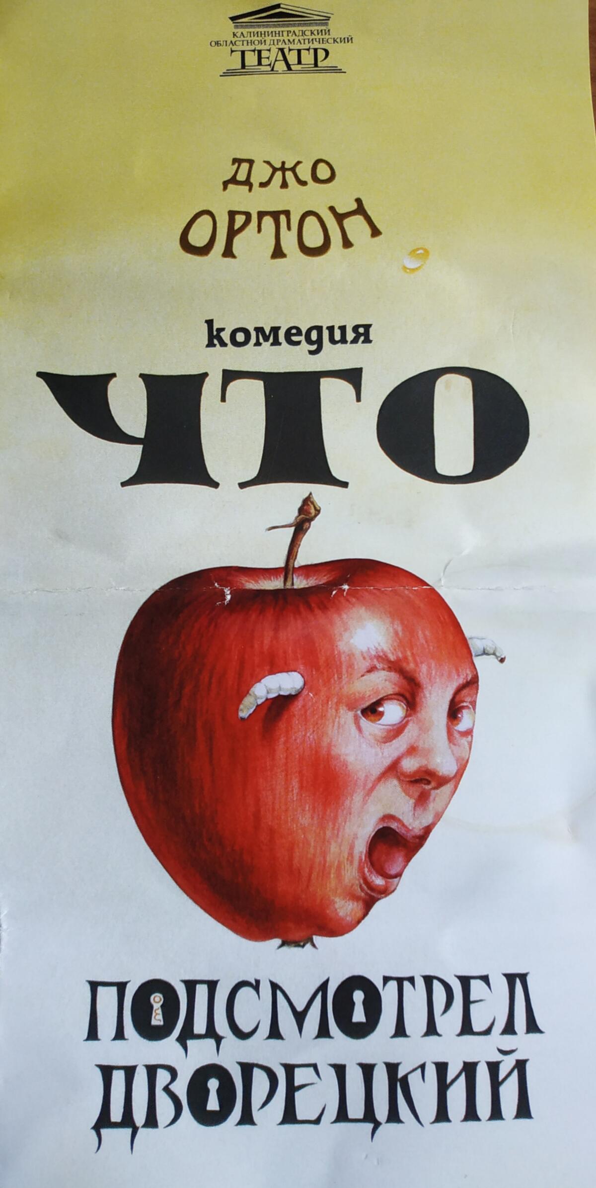 Автор этой вещи Джо Ортон — англичанин, а театральный спектакль в Калининграде поставил Вячеслав Виттих. Спектакль заявлен как комедия. Джо Ортон на бескрайних российских просторах практически неизвестен. Ну, продаётся его электронная книга, и всё. Возможно, есть и бумажные варианты, но он не на слуху.