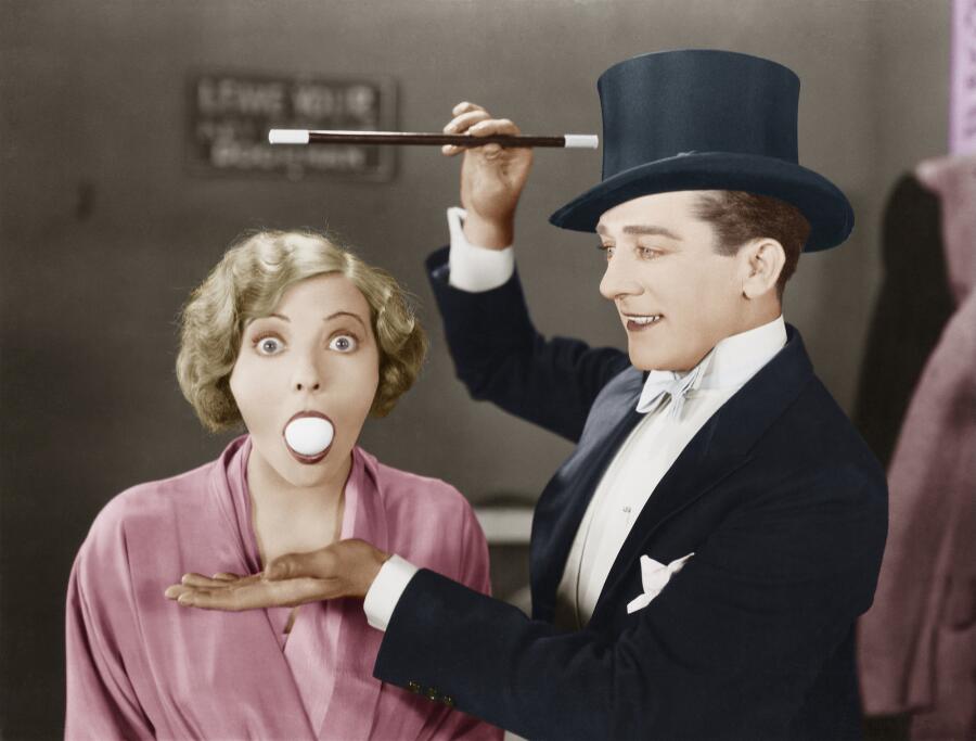 Показывающий фокус имитирует движения «наперсточника», потом просит угадать, где находится шарик. Зрители, конечно, ошибаются, шарик появляется совсем не под тем конусом.