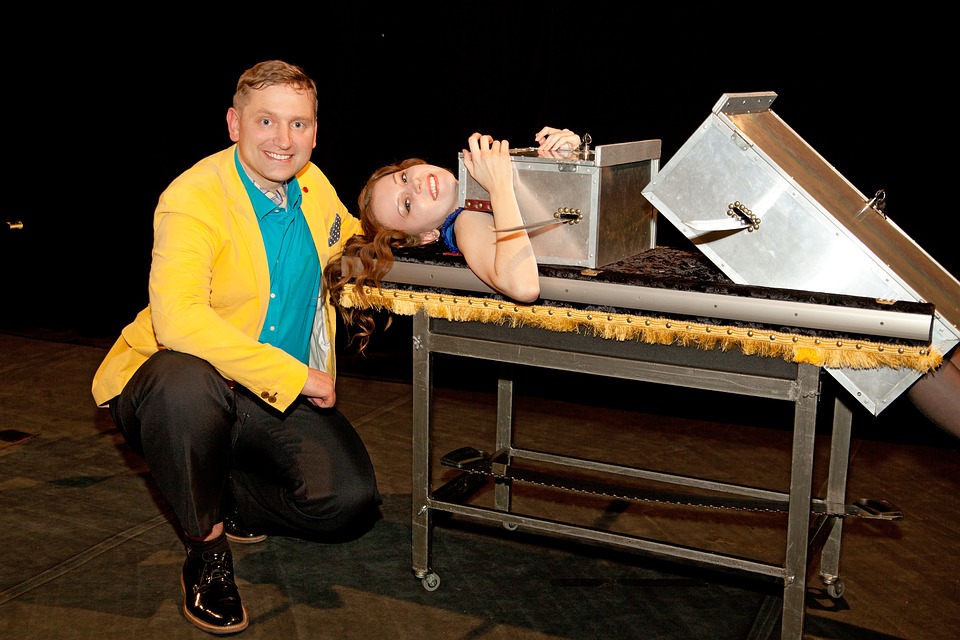 - Секрет фокуса. Когда мы перемещаем банку по столу, мы незаметно скидываем ее себе на колени, при этом газета в наших руках должна по-прежнему сохранять форму банки. Осталось хлопнуть по газете.