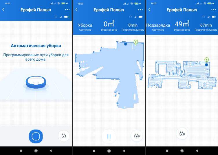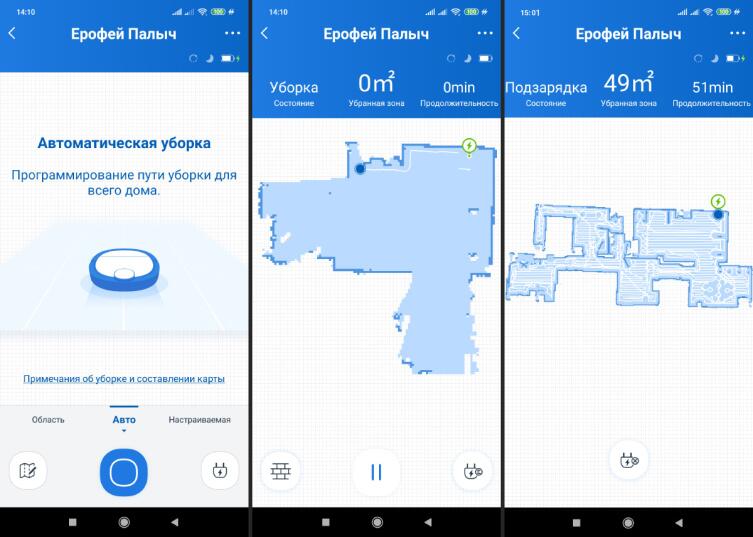 На уборку трёхкомнатной квартиры в таком режиме Ерофей Палыч потратил 67 минут. Я решил не пускать его в санузлы (там — высокий порог, который пылесосу не по зубам) и в одну из кладовок (чтобы не травмировать хранящийся там старый пылесос).