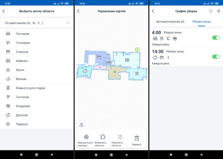 Расширенный режим позволяет составить чёткое расписание для уборки отдельных комнат. В этом случае пылесос отправляется на разведку (по сути, это такая же уборка, как и при простом режиме, только в её процессе подготавливается план всей квартиры).
