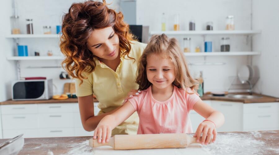 Давайте задания по возрасту. Трёхлетнему крохе вполне по силам разложить столовые приборы. Пятилетний малыш может расставлять тарелки с едой и убирать грязную посуду. Поручайте детям подметать пол, протирать чашки и тарелки, разбирать корзину посудомоечной машины. Чем больше времени проводит ребёнок на кухне, тем проще ему будет научиться готовить.