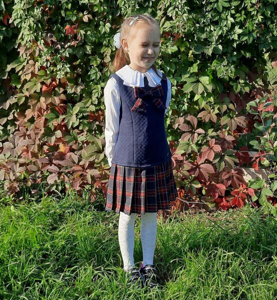 - в другой — с вариативным выбором: брюки/юбка, сарафан, парадный пиджак, кардиган, жилет — одежду «шьют сообща».