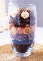 Ещё можно вот такую вазочку сделать из шишек и апельсинок
