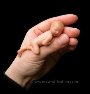Есть целая серия фотографий с такими малышами. Лично мне страшно и не приятно смотреть на эти фото. Очевидно, что ребенок таких размеров не может быть живым ребенком...