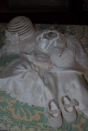 Специальная одежда малышу не нужна, но желательна. Ее по традиции должна покупать крестная мама. Для младенцев продаются специальные крестильные рубашки, они безразмерные и совсем недорогие. Если их дополнить белыми чепчиком и носочками — получится настоящая крестильная одежда. Если же крестная хочет сделать крестнику дорогой подарок — в продаже имеются крестильные наборы за несколько тысяч рублей.