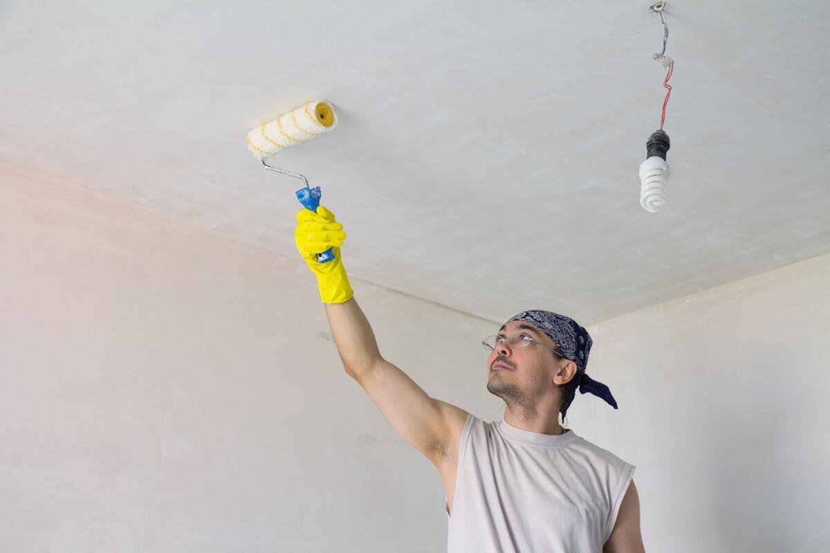 Теперь можно наносить основное покрытие потолка. Если вы хотите просто покрасить его, тогда у вас есть два варианта — побелка и покраска красками.