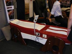 Еще одно новшество (не было на прошлых выставках) — массажная кровать. Массажных кресел — не счесть, любители бесплатных процедур сидят в них, пробуют разные режимы, переходят из кресла в кресло, от фирмы к фирме. (Очень может быть, что и купят. На выставке все продается, заказывайте — доставят домой.) Да, о кровати. Множество функций: постукивание, поглаживание, надавливание, прокатывание… Все замечательно! Но когда такая кровать появляется дома, все знакомые начинают валом валить — хотят полежать и попробовать! И кому это понравится?