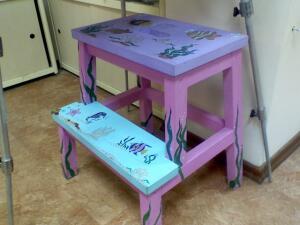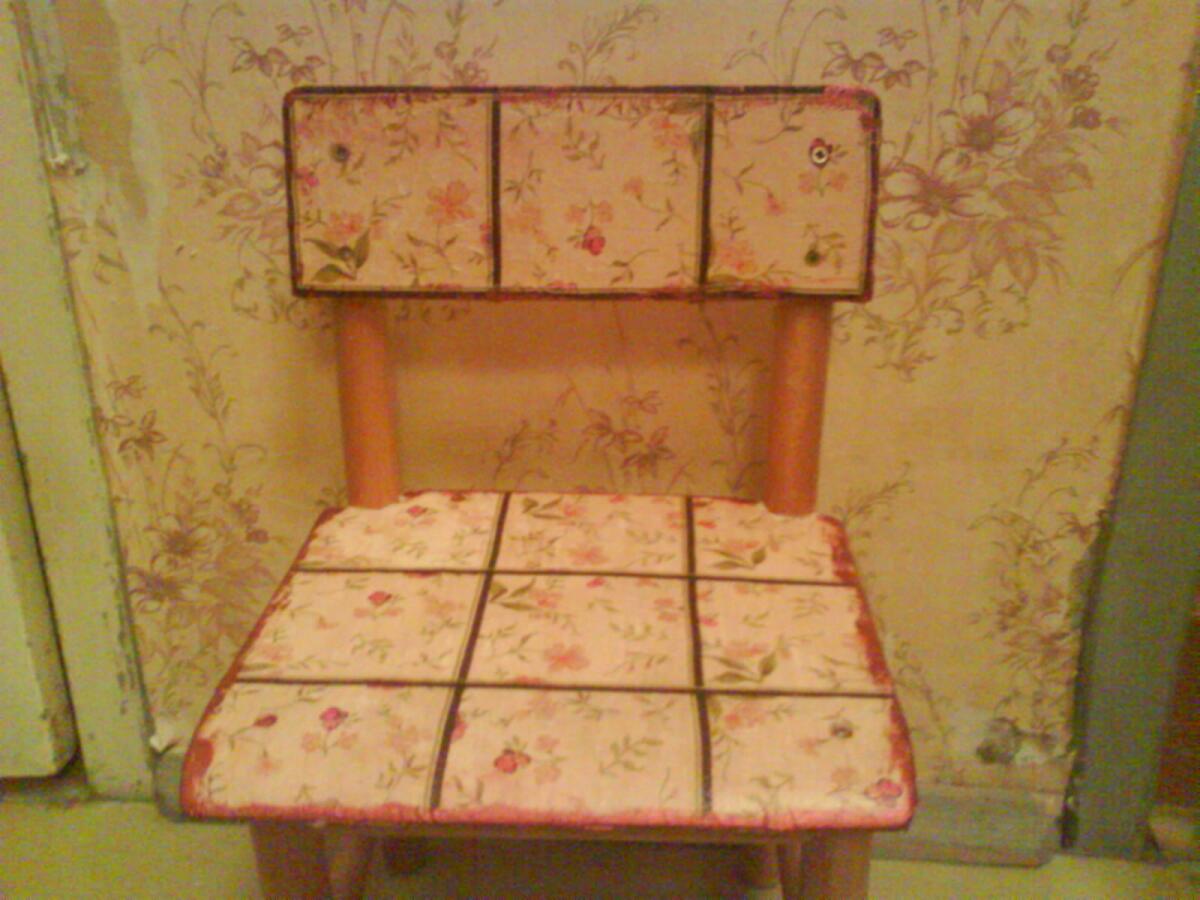*стульчик (первая работа) декупирован салфетками - их я прямо в ПВА размачивала. Как раз акриловым лаком сверху делала - даже краска не смывается, если мыть его...