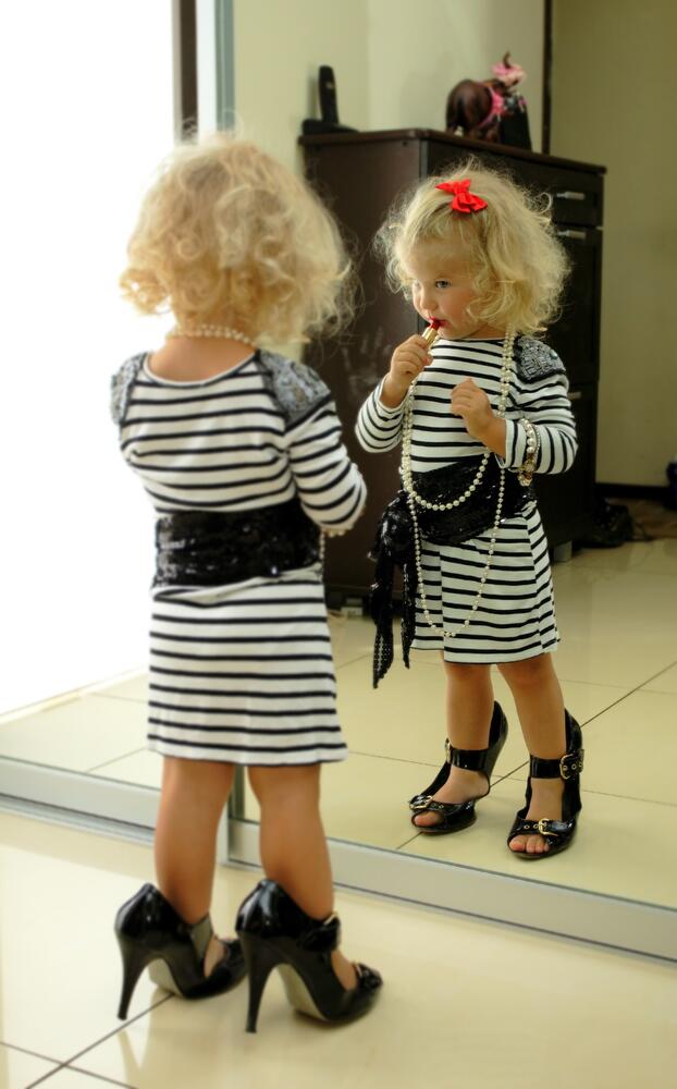 В дошкольном возрасте отношения с зеркалом сильнее развиваются у девочек. Она может подолгу смотреться в зеркало, осматривать себя, следить за своей мимикой и даже разговаривать с зеркалом. Очень хорошо, когда в комнате висит зеркало вместе с полочкой. На полочку можно положить расческу, набор детской косметики, посадить любимую игрушку. И ребенок станет ухаживать не только за собой, но и за игрушкой. Получать такие важные уроки хорошего вкуса и аккуратности.
