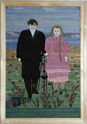 К. Ю. Старохамская, вот оно, с волосами ))) Самое милое - это сооруженьице за фигурами людей. Классическая фотосалонная мебелюшка. Правда, не из катушек)))