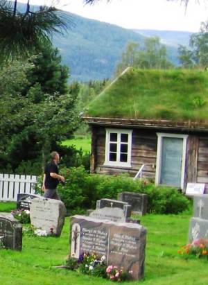 Для иллюстрации - в Скандинавии 1. строение с дерновой крышей на площадке перед ледником Бриксдайл, 2. старинная церковь с крышей из каменных пластин и 3. дом с дерновой крышей рядом с церковным кладбищем.