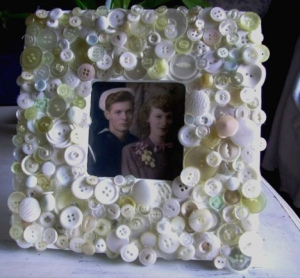 Эффектная фоторамка,- использованы перламутровые и белые пуговицы.