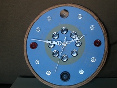 Часы с детскими пуговицами станут эффектным украшением для детской комнаты (думаю, ваш ребенок быстрее научится определять время с такими часами); пуговицы с «сердечками» придадут Вашему сувениру романтический оттенок, а со вкусом подобранные пуговицы «в возрасте» наверняка порадуют Вашу бабушку.