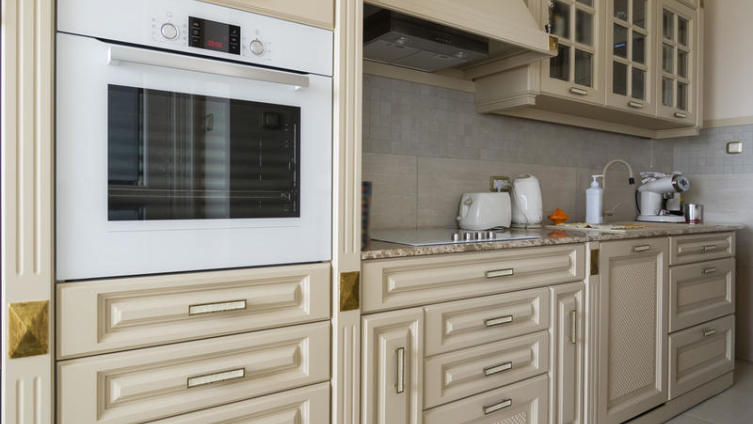 К подобной хитрости чаще всего прибегают на кухне — холодильники и духовые шкафы встраивают в мебель. Используя листы ДСП или МДФ, из которых сделаны фасады остальной мебели на кухне можно отлично замаскировать бытовую технику. Однако для подобных работ необходимо нанимать лишь опытных специалистов, не пытайтесь сделать это самостоятельно, так как при встраивании приборов обязательно нужно учесть массу нюансов.