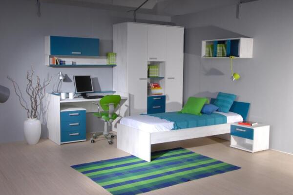 Во-первых, следует визуально отделить зону сна. Она должна быть выдержана в спокойных, неагрессивных тонах. При выборе обоев или краски для отделки стен, вы должны знать, что мягкий зеленый цвет подсознательно повышает самоконтроль, дисциплинирует и снимает раздражительность. Свежий и спокойный голубой цвет побуждает к размышлениям и приводит мысли в порядок. Выбирайте из этих двух цветов при обустройстве зоны сна для вашего непоседы.
