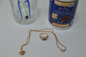Не понимаю, зачем весь этот кошмар: аммиак, нашатырь, зубные щетки... Средство в магазине купите и за 10 минут отмоете все украшения в доме, без опасности нанести вред себе или драгоценностям. Я вот таким, как на фото, пользуюсь.