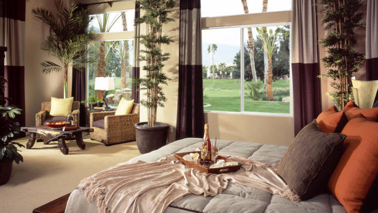 С минимальными затратами получится как бы «секретная» спальня в зале, где при «аварийной» ситуации легко спрятать от посторонних глаз не убранные в спинку дивана подушки и одеяла. Разумеется, занавес должен по отступу от длинной стены рассчитываться с разложенным диваном. Кресла, журнальный столик, мебельная стенка с телевизором в ней, торшер при сдвинутом занавесе создадут зрительную иллюзию на тот счет, что никакого «спального» дивана в зале нет. Просто кресла и журнальный столик ставьте перед диваном.
