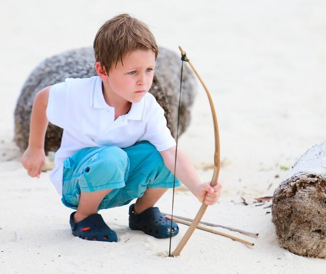 Да, именно такой силы мои чувства, когда я вижу, как старший беспрестанно целится во все мало-мальски движущееся самопальным луком! Изящным и грозным одновременно: не зря он ходил в лес на прогулки!