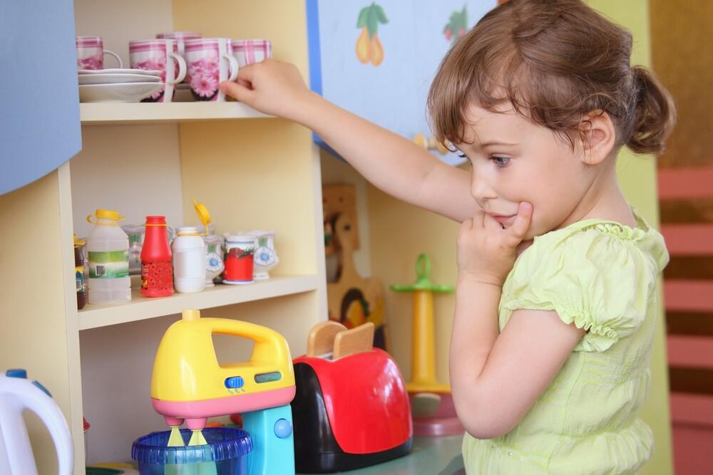 Наличие в детской низкого шкафчика позволит ребенку самостоятельно складывать игрушки в том порядке, который наиболее удобен для него. При покупке следует учитывать рост малыша. Верхняя полка должна находиться на уровне поднятой детской руки. Таким образом, для того, чтобы взять или положить игрушку, ее владельцу не придется вставать на стул.