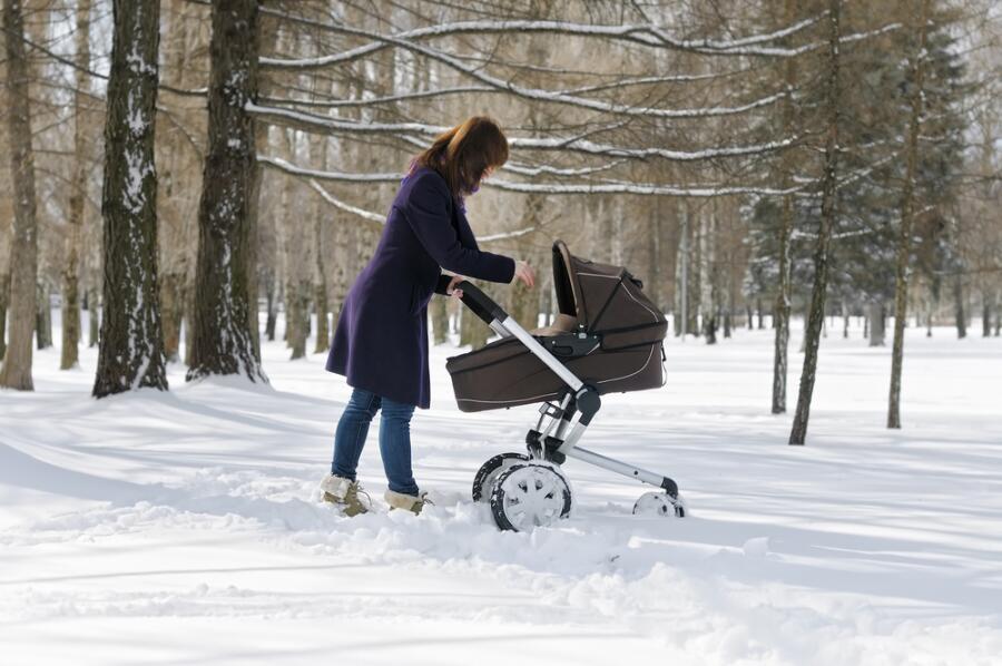 Многие родители забывают о таком параметре изделия, как проходимость. Она во многом зависит от размера колес. Кроме того, коляска должна плавно скользить по дороге. Поэтому следует покупать изделия с шипами. Такие зимние коляски станут надежной опорой, предохраняющей от случайного падения.
