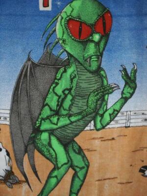 Так вот, город (1000 жителей) не растерялся и взял чупакабру в символы. Молодцы, пусть живет чупакабра не только в легендах, но и на майках и на водонапорных башнях. Собираюсь съездить в город, тогда поставлю фотографии.