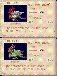 «Рожками шевелит, глаза такие зеленые с фиолетовым отливом, капюшончик бородавчатый раздувается. А сам он был фиолетово-черный с шипастым хвостом. Треугольная голова с черно-розовой пастью широко распахнулась… Слюна его крайне ядовита и если попадет на живую материю, то тут же пойдет замена углерода на кремний. Проще говоря, все живое превращается в камень и дохнет, хотя ходят споры, что от взгляда Василиска тоже идет окаменение, но те, кто хотел проверить это, обратно не вернулись…»