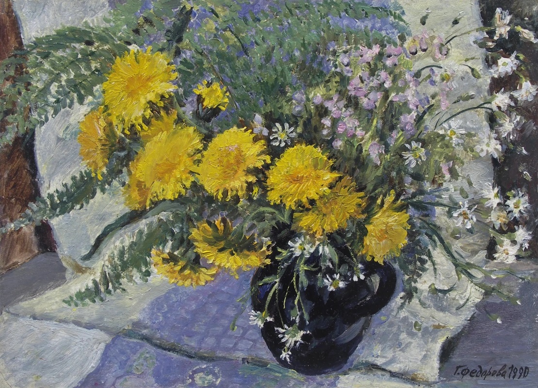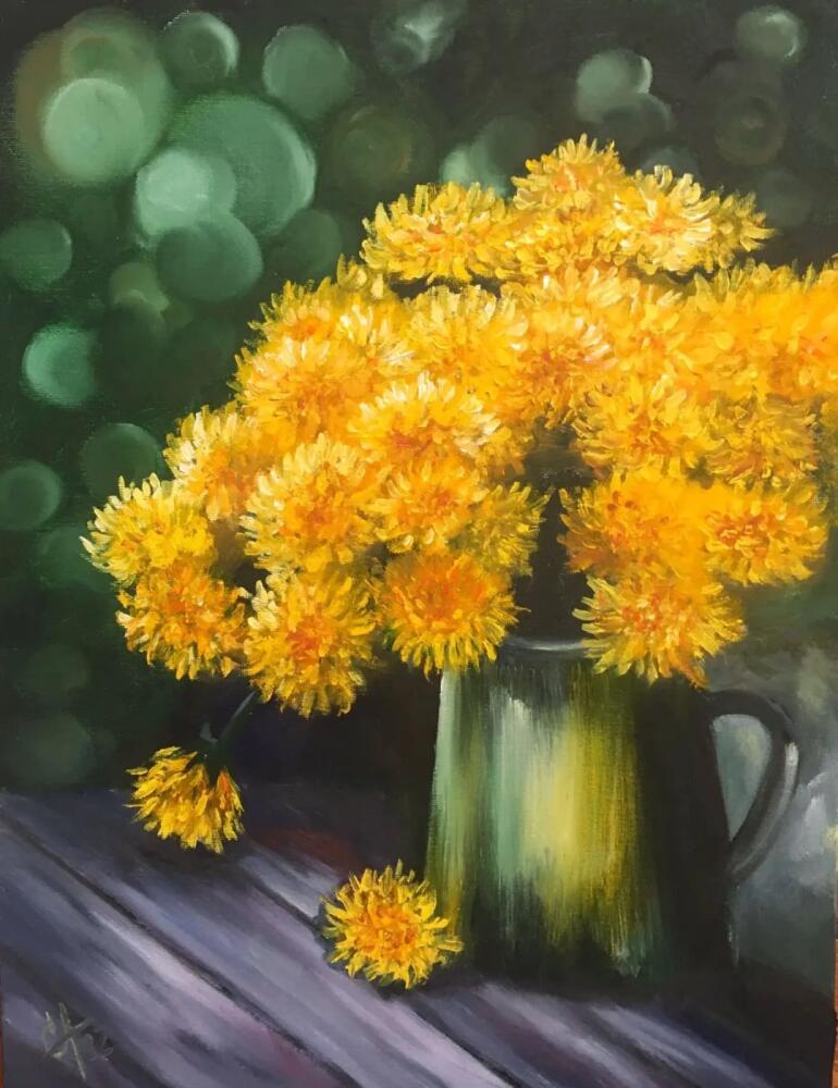 - Цветки одуванчика (столовая ложка), перетертые в блендере с натуральным йогуртом (чайная ложка) + мёд (чайная ложка) + масло пшеничных зародышей (3 капли).