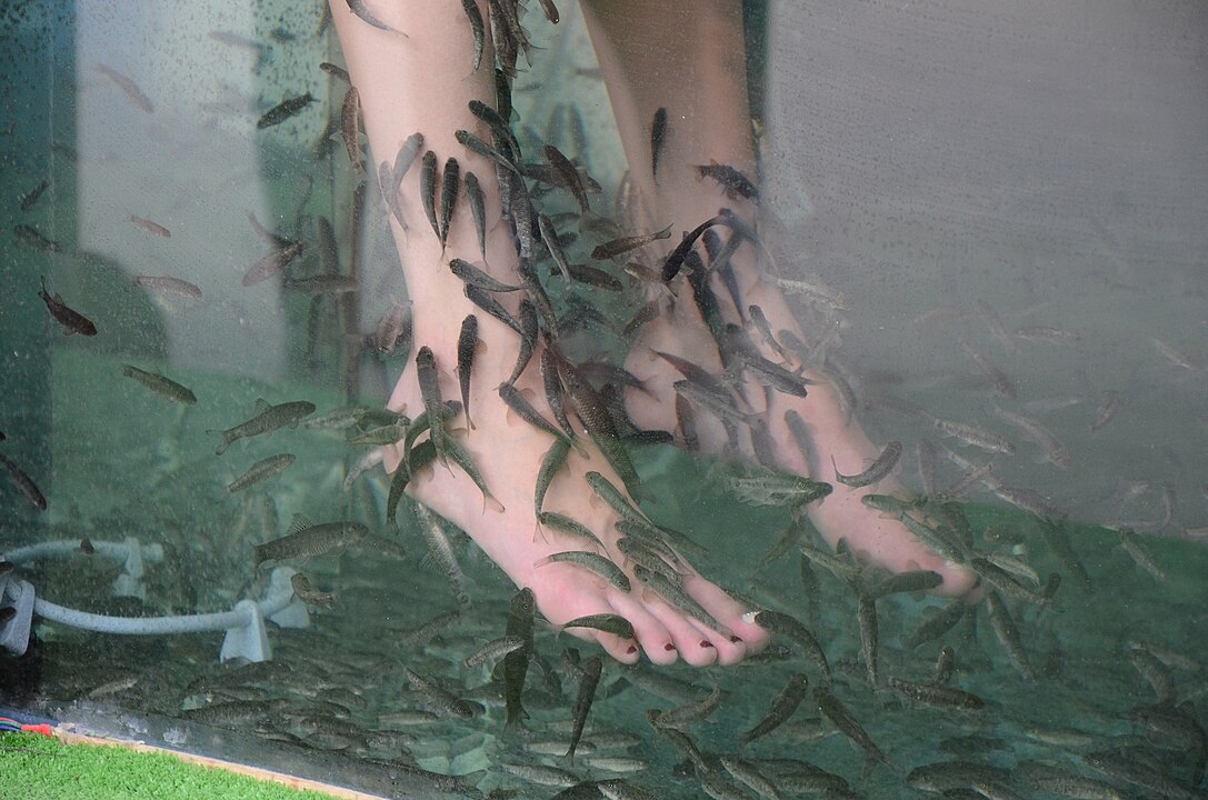 - Секрет его в том, что старая огрубевшая кожа вокруг ногтевого ложа, на пятках, между пальцев является лакомством для беззубых рыбок. В процессе сеанса крохотными ротиками, которые имеют форму скребка, «мастера маникюра и педикюра» бережно освобождают свежий слой кожи из-под старого эпидермиса.