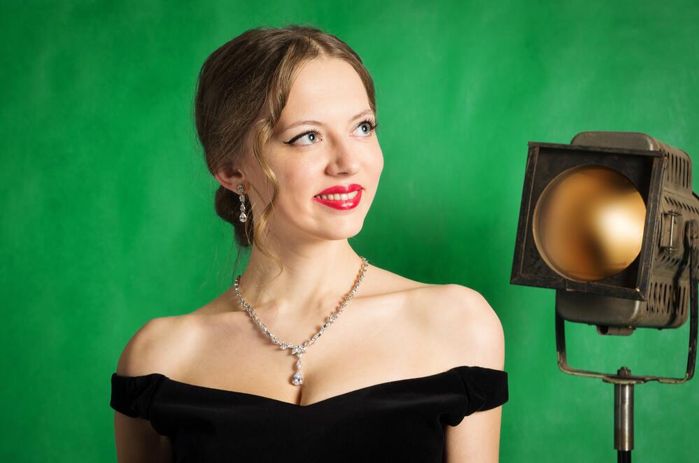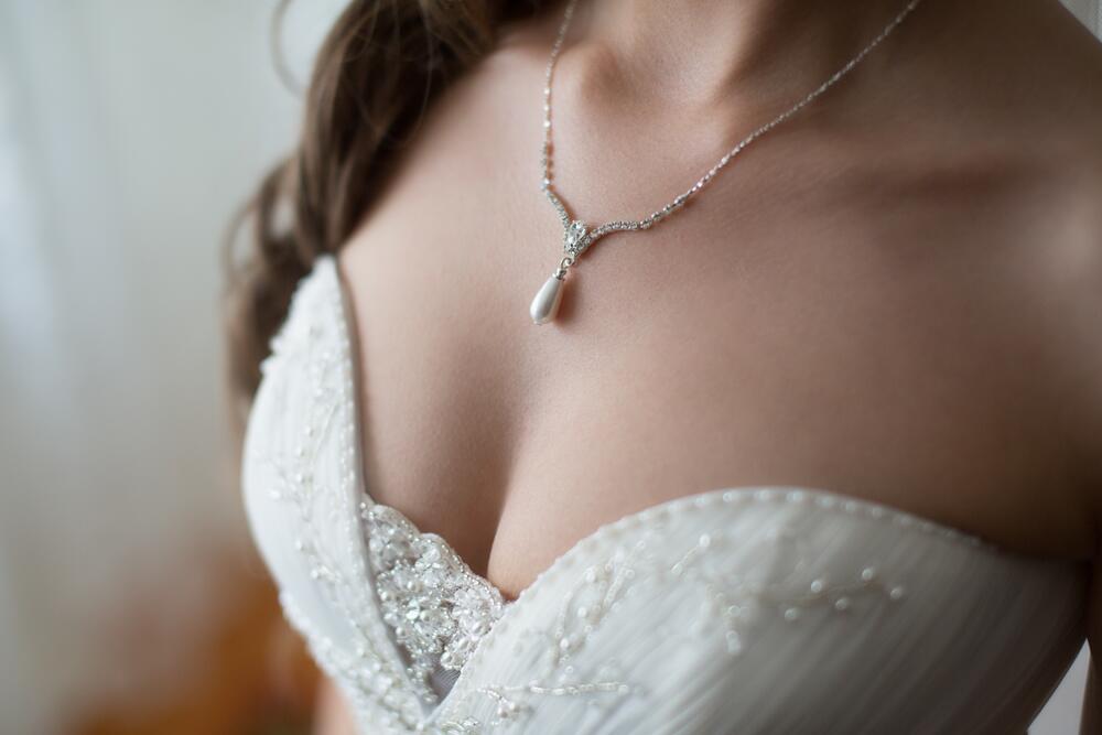 Если платье или кофточка оставляют открытыми плечи, можно надеть длинные серьги. Глубокий вырез можно подчеркнуть цепочкой с кулоном или ожерельем, но не крупным. Разумеется, не стоит надевать цепочку или ожерелье в комплекте с длинными серьгами — это будет перебор. Бархатки по-прежнему актуальны, однако они подходят далеко не ко всем платьям.