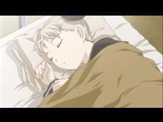 В аниме персонажи вообще обычно спят вполглаза, потому что их либо опасные враги преследуют, либо кошмары душат и они не могут надолго закрыть глаза. Если смотрели аниме, которые шли у нас ещё в начале 90-х - там персонажи зачастую спят не раздеваясь, даже в госпитале в койку их так укладывают.