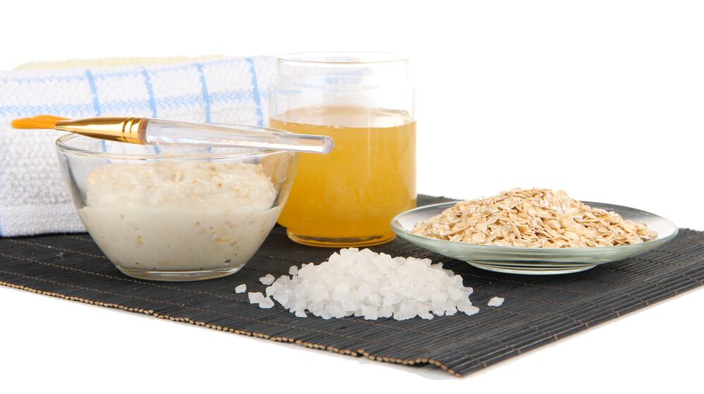 Одну столовую ложку измельченного в кофемолке «Геркулеса» или риса смешайте с таким же объемом растительного масла и добавьте столько же свежевыжатого сока листьев березы, молодой крапивы или земляники. Можно взять сок смеси этих трав. Все компоненты размешать до однородной массы и нанести на очищенную кожу лица и шеи. Через 20 минут маску смойте.