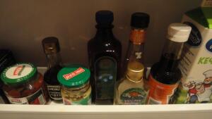 • Это так. Просто в качестве информации. У меня в доме всегда есть бутылочка льняного масла. Или даже две Вторая обычно покупается перед тем, как вот-вот закончится первая. Вот они, на полочке в холодильнике. Между горчицей и тем соевым соусом, который ближе к кефиру.