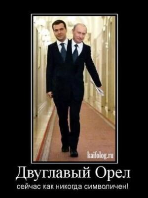 Будь моя воля, то я на гербового двуглавого орла шапки-ушанки надел бы. Причем, на одной голове шапку надвинул бы поглубже – чуть ли не на глаза, уши у шапки опустил бы вниз и завязал потуже под клювом-подбородком. На другой голове – шапку бы на затылок нахлобучил, уши у шапки поднял вверх и не завязывал бы. Пусть одно ухо шапки надломилось бы, и шнурки-завязки болтались в разные стороны. Вот была бы красота! Как-то по-российски бы получилось.… По-нашему - красотень!