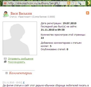 Аккаунт с именем Вася Васькин зарегистрирован 19.07.10, и на следующий день я комментировала его высказывания, никаким Сержем Ивановым он не был.