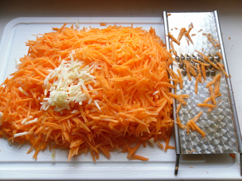 Затем корнеплоды тщательно моем и чистим. Потом натираем на терке. Можно добавить чеснок, приправу для моркови по-корейски, растительное масло. Для детей — просто капаем чуть-чуть масла и посыпаем сахаром.
