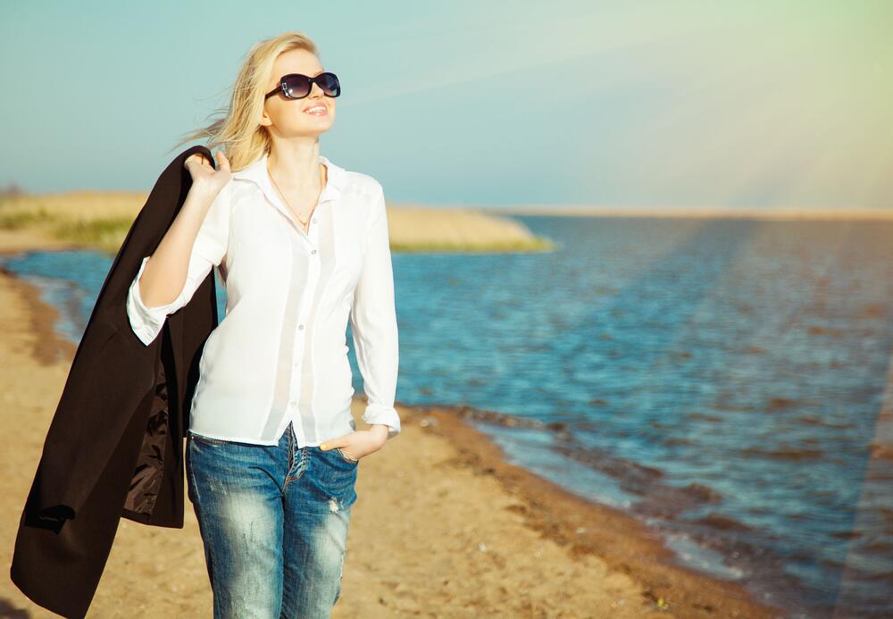 - очки от солнца с черными или коричневыми линзами (они сочетаются с любым нарядом);