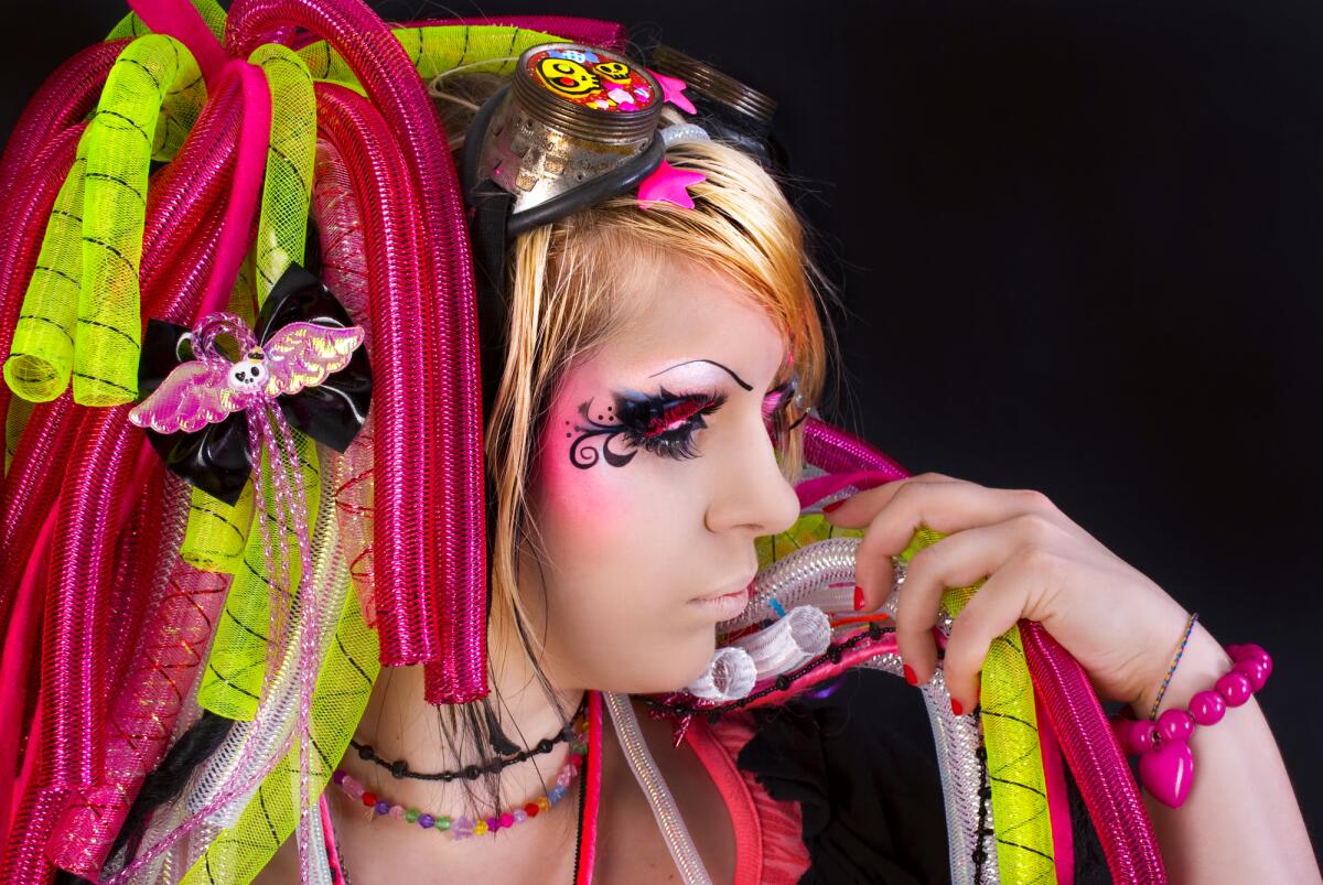 Немалое влияние на моду оказала и субкультура «младших братьев» готов — эмо, представители которых нередко похожи на персонажей аниме-мультиков. От эмо в моду вошли чёлка на пол-лица, прядь которой часто выкрашена в радикально выделяющийся цвет, маечки, кеды, пышные кукольные юбочки и пристрастие к чёрно-розовому сочетанию.