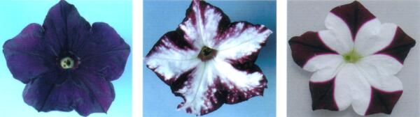 Крайний слева цветок — дикий тип, ядра двух других цветков содержат трансген, мРНК которого вызывают постранскрипционный сайленсинг гена, ответственного за синтез пигмента по механизму РНК-интерференции.