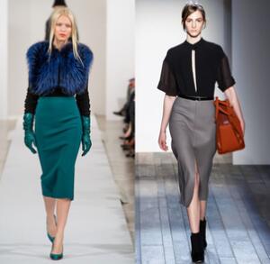 Для средней длины остается актуальной юбка-карандаш, отличающаяся, однако, необычными деталями и редкой структурой ткани. Givenchy, Prada и Gucci считают, что лучший выбор — это фактурный бархат и яркая кожа рептилии с асимметрией, воланами, рюшами и нашивками.