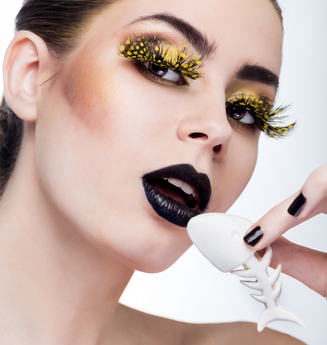 А вообще фантазии у модниц в части макияжа глаз не имеют, кажется, никаких границ. Как вам ресницы, покрытые тонким слоем золота? Тут уж действительно каждая ресничка на вес золота! Шокируют и накладные ресницы, сделанные из перьев колибри. Для этого специально отлавливают миниатюрных птичек, чтобы взять у них определенного цвета перья. Такие ресницы, сами понимаете, доступны по стоимости далеко не всем. Побочный эффект — ресницы эти одноразового ношения. Увы, они легко сминаются при моргании.