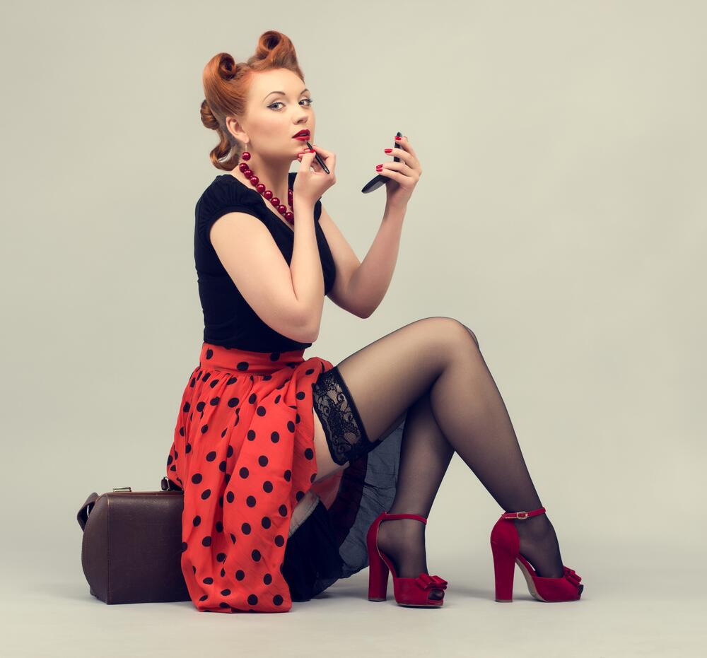 Макияж глаз для ретро-образа характеризуется наличием стрелок и использованием перламутровых оттенков теней. Нанесите светлый оттенок теней на подвижное веко и проведите стрелочки. Форма стрелок может варьироваться от широких до невероятно тонких — выбор за вами. Кроме того, можно подчеркнуть драматичность взгляда, дополнительно использовав черный карандаш для глаз на нижнем веке.