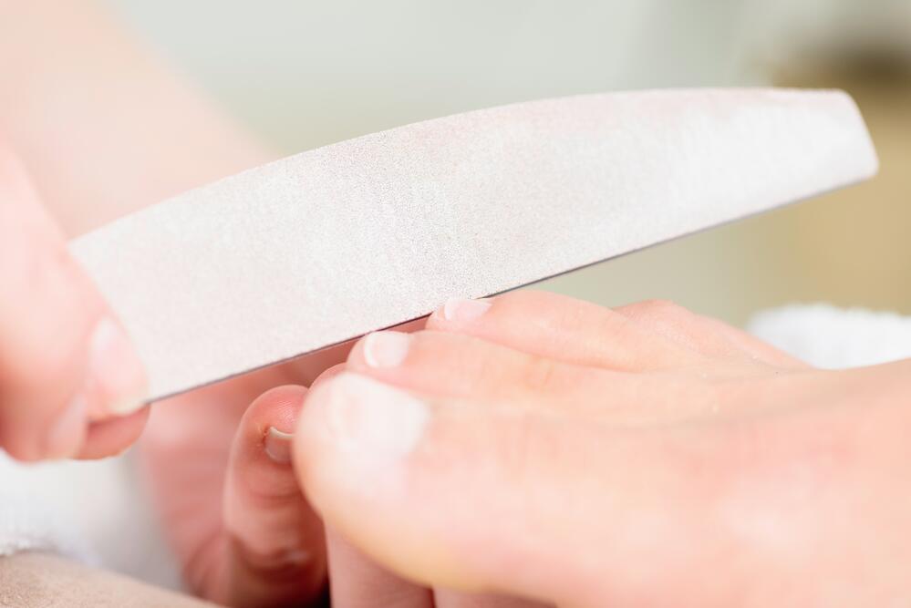 Лишнюю часть ногтя можно срезать (это будет отрезной педикюр) или спиливать — как обычной пилочкой, так и «спецсредствами» (аппаратный педикюр). Срезать или пилить ноготь нужно по прямой, а затем закруглять углы от края к центру.
