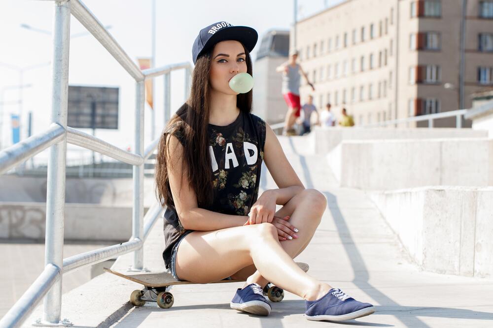 Отдельного упоминания заслуживают головные уборы. В этом отношении самым популярным элементом стала бейсболка. Причем часто этот аксессуар совсем не уступает по яркости одежде. Она может оказаться снабжена металлическим декором или стразами.
