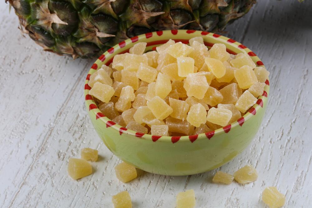 У сушеного ананаса есть прекрасное свойство способствовать снижению веса и сохранению молодости, а все благодаря тому, что он богат органическими кислотами, ускоряющими процесс обмена веществ. В ананасе содержится такое вещество, как бромелайн, способствующее улучшению пищеварения, устранению воспалительных процессов.